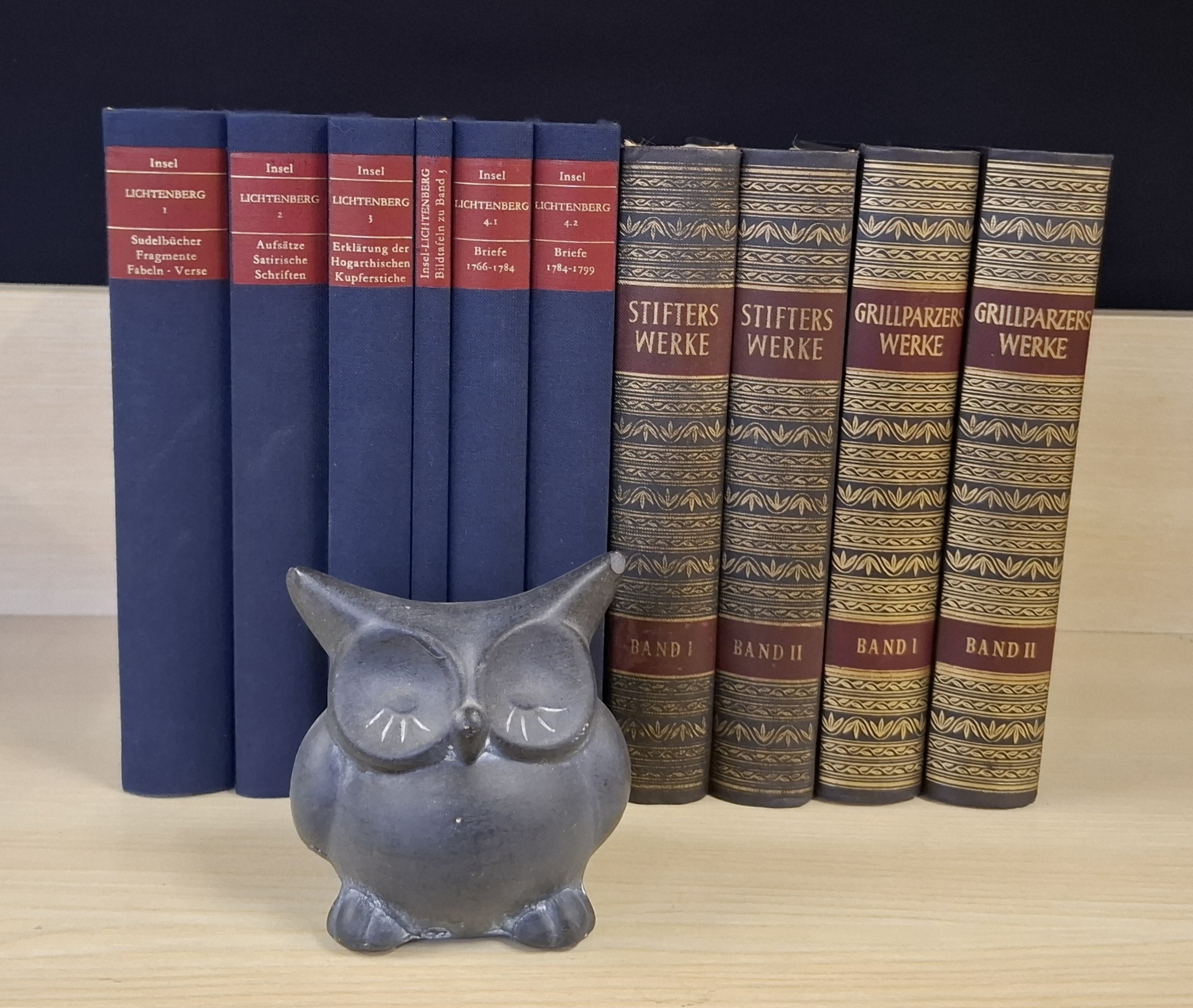 Sie erhalten das abgebildete Bücherpaket in blauen Farbtönen. Der Zustand der Bücher ist dem Alter entsprechend ordentlich.