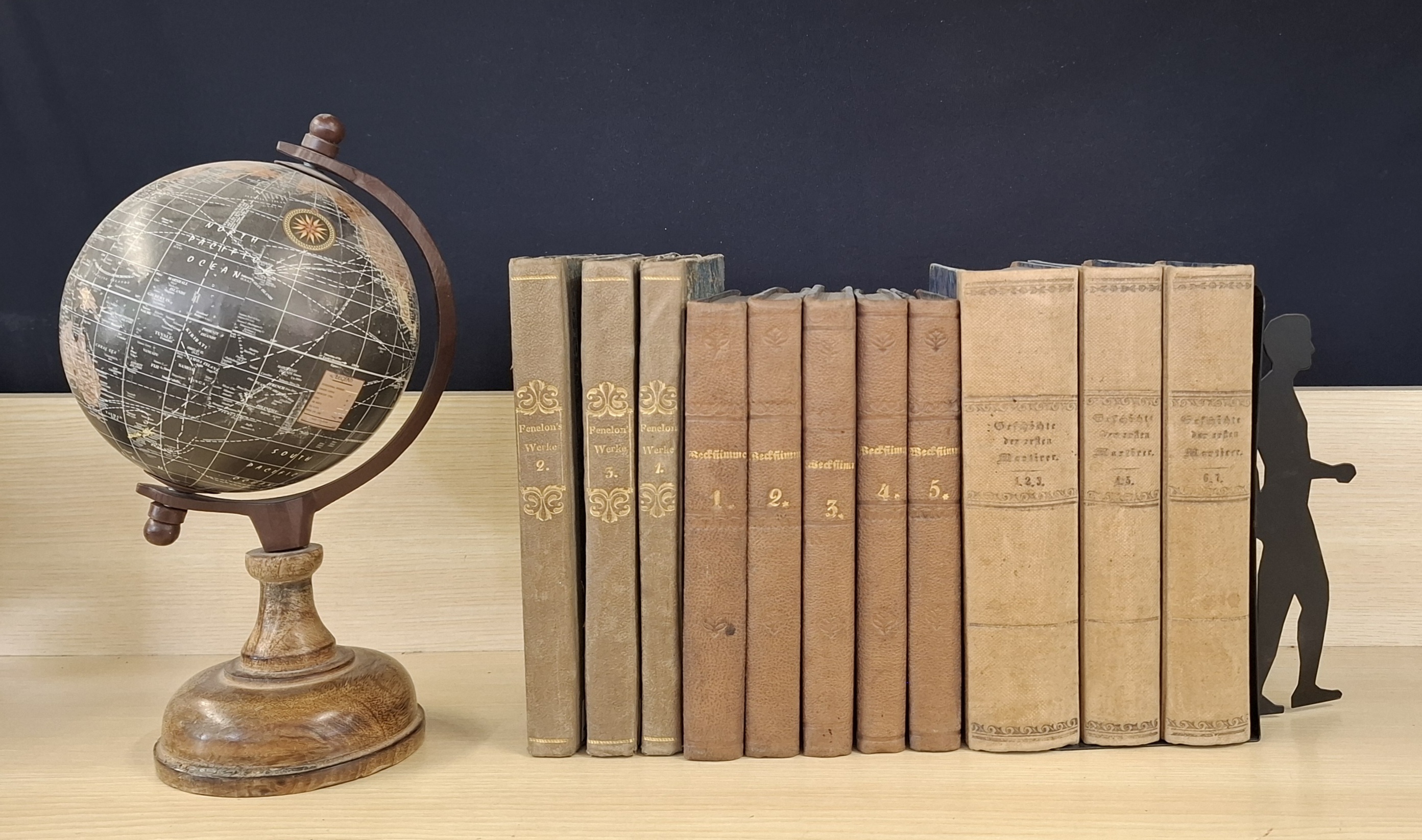 Sie erhalten das abgebildete Bücherpaket in braun-grünen Farbtönen. Der Zustand der Bücher ist dem Alter entsprechend ordentlich.