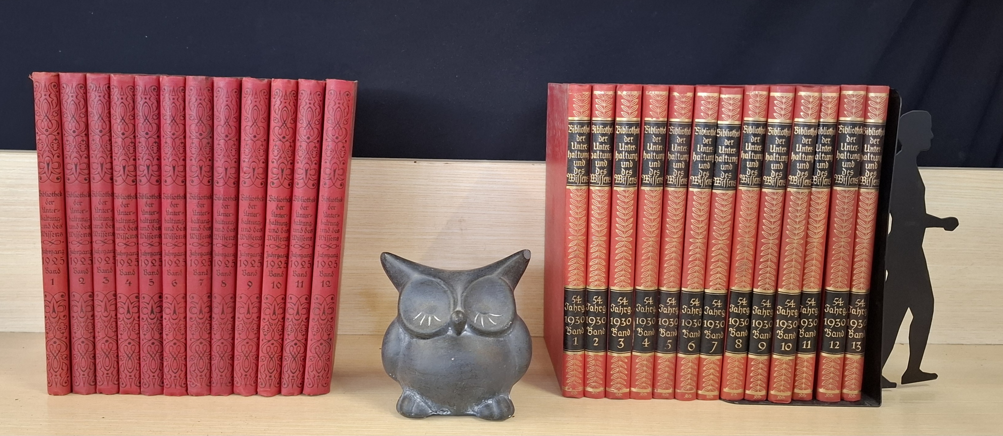 Sie erhalten das abgebildete Bücherpaket in grün-roten Farbtönen. Der Zustand der Bücher ist dem Alter entsprechend ordentlich.