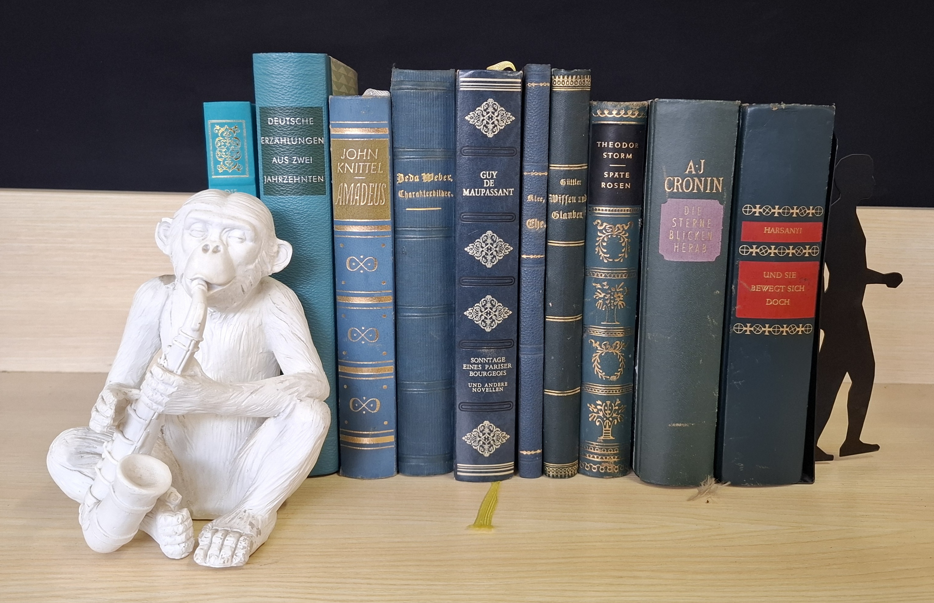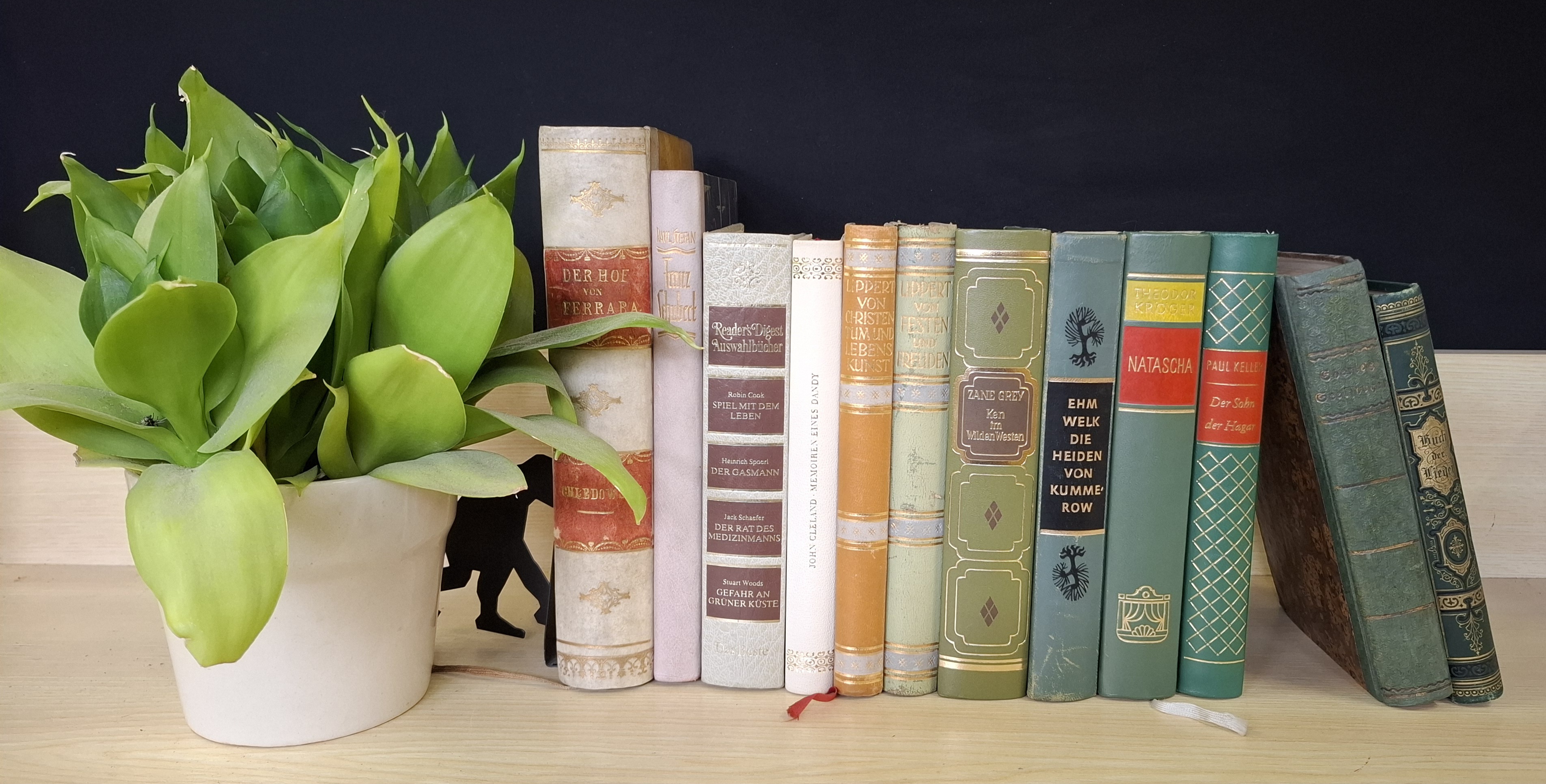 Sie erhalten das abgebildete Bücherpaket in bunten Farbtönen. Der Zustand der Bücher ist dem Alter entsprechend ordentlich.