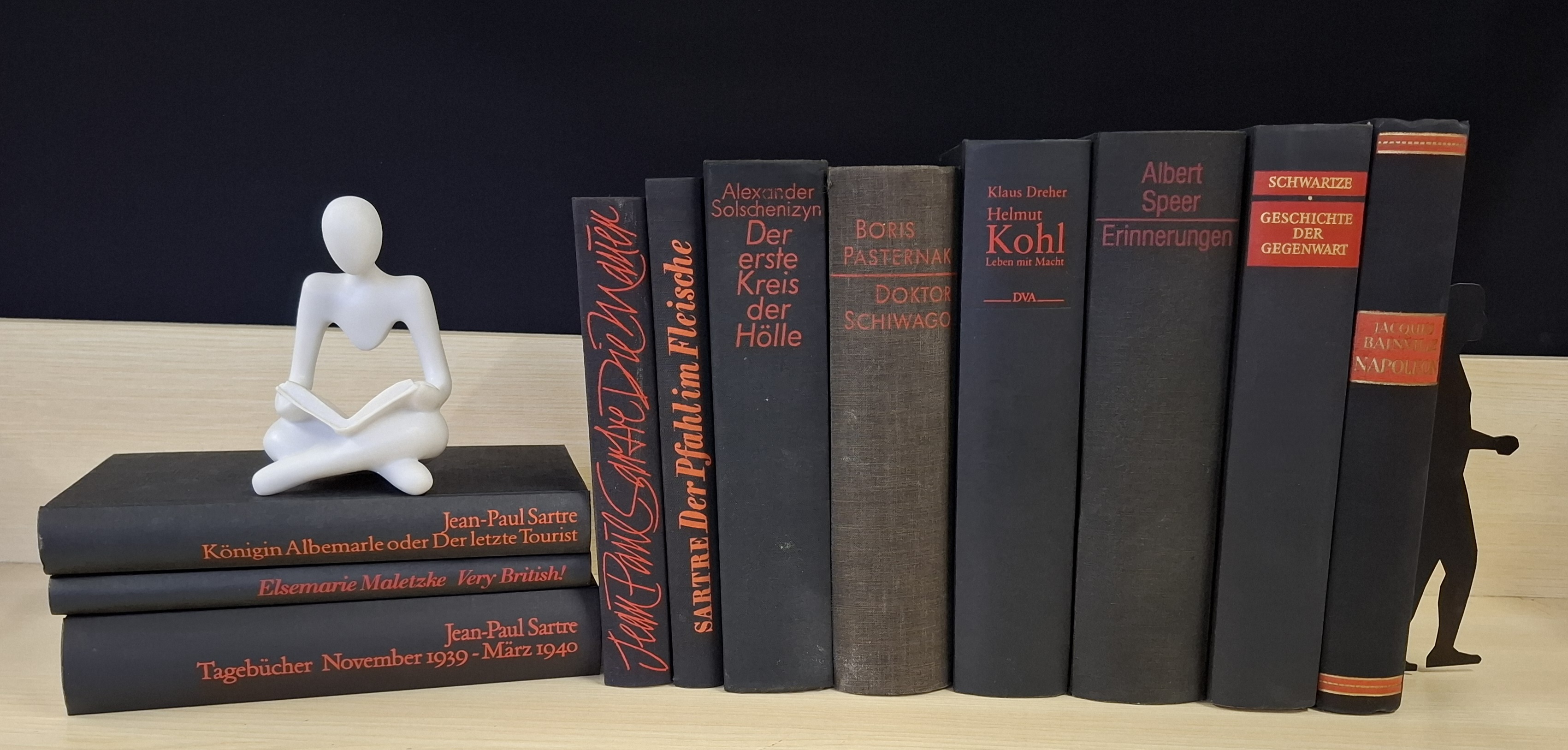 Sie erhalten das abgebildete Bücherpaket in schwarz-roten Farbtönen. Der Zustand der Bücher ist dem Alter entsprechend ordentlich.