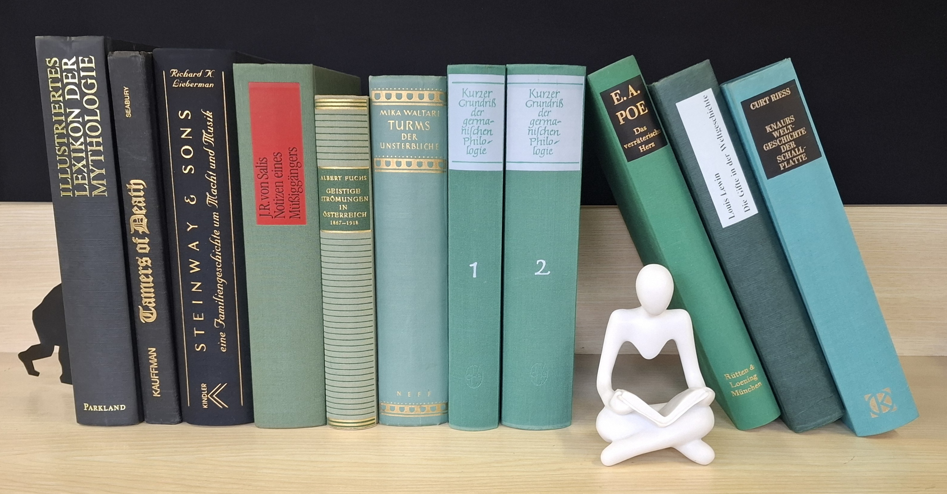 Sie erhalten das abgebildete Bücherpaket in bunten Farbtönen. Der Zustand der Bücher ist dem Alter entsprechend ordentlich.